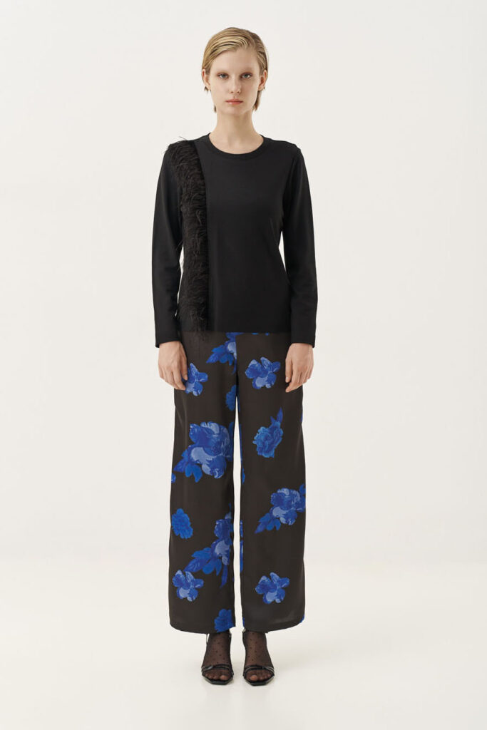 Αν ψάχνεις για μια εμφάνιση με ιδιαίτερη γοητεία, αυτή η μπλούζα είναι η απάντηση. Η λεπτομέρεια με το φτερό προσθέτει ένα μοναδικό twist που σε κάνει να ξεχωρίζεις! Φόρεσέ τη με παντελόνι μαύρο με μπλε τύπωμα λουλούδια, μία δερμάτινη φούστα ή ένα cigarette παντελόνι σε έντονο χρώμα, όπως μπορντό ή σμαραγδί. Ολοκλήρωσε το look με πέδιλα και μια μικρή λαμπερή τσάντα για την απόλυτη γιορτινή εμφάνιση.