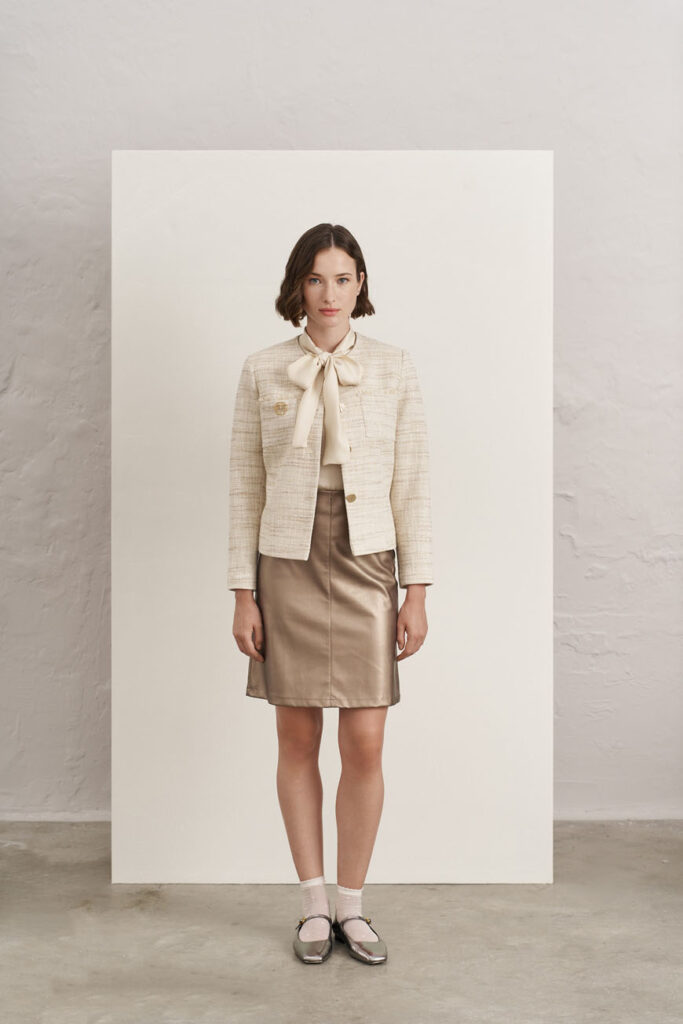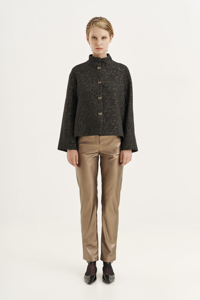 Θέλεις να κάνεις εντύπωση; Αυτό το σύνολο είναι η τέλεια επιλογή. Το μπροκάρ σακάκι αποπνέει πολυτέλεια, ενώ το χρυσό παντελόνι σε βάζει κατευθείαν στο επίκεντρο της προσοχής! Φόρεσέ το με ένα απλό λευκό ή μαύρο τοπ για να αφήσεις τις υφές και τα χρώματα να πρωταγωνιστήσουν. Πρόσθεσε statement σκουλαρίκια, ένα κομψό clutch και τις αγαπημένες σου μπαλαρίνες ή γόβες για μια εμφάνιση που αναδύει γιορτινή πολυτέλεια.