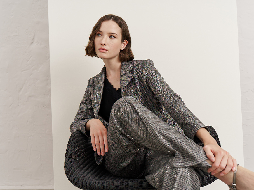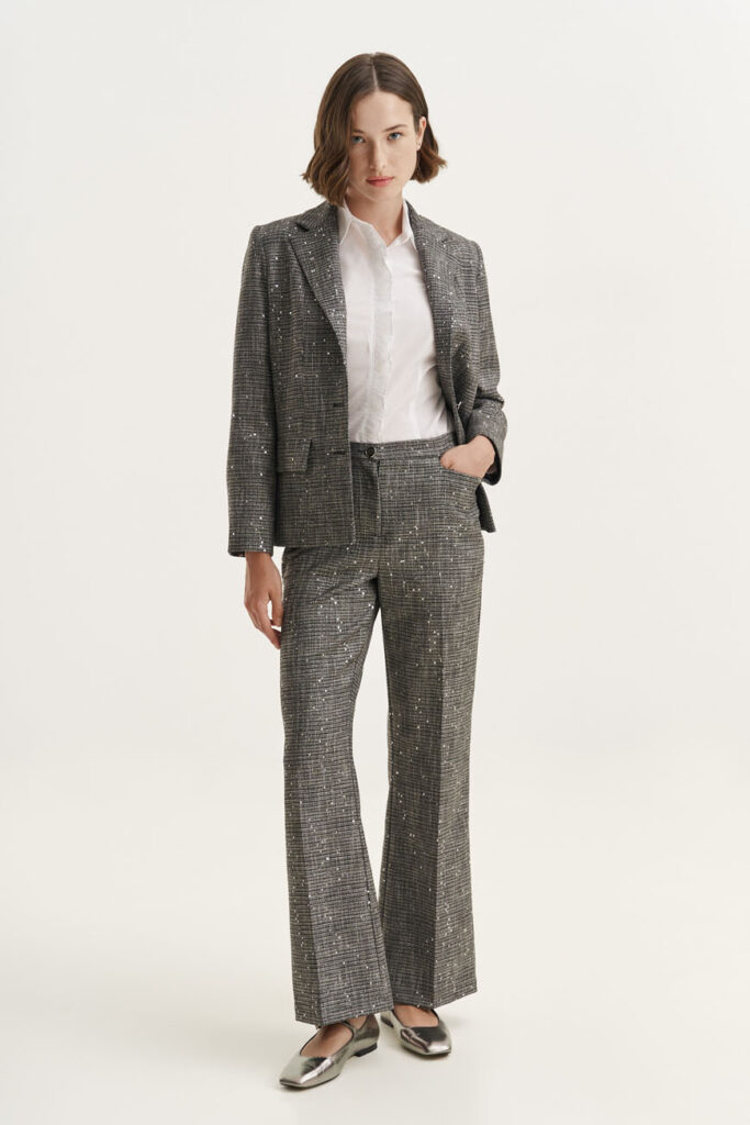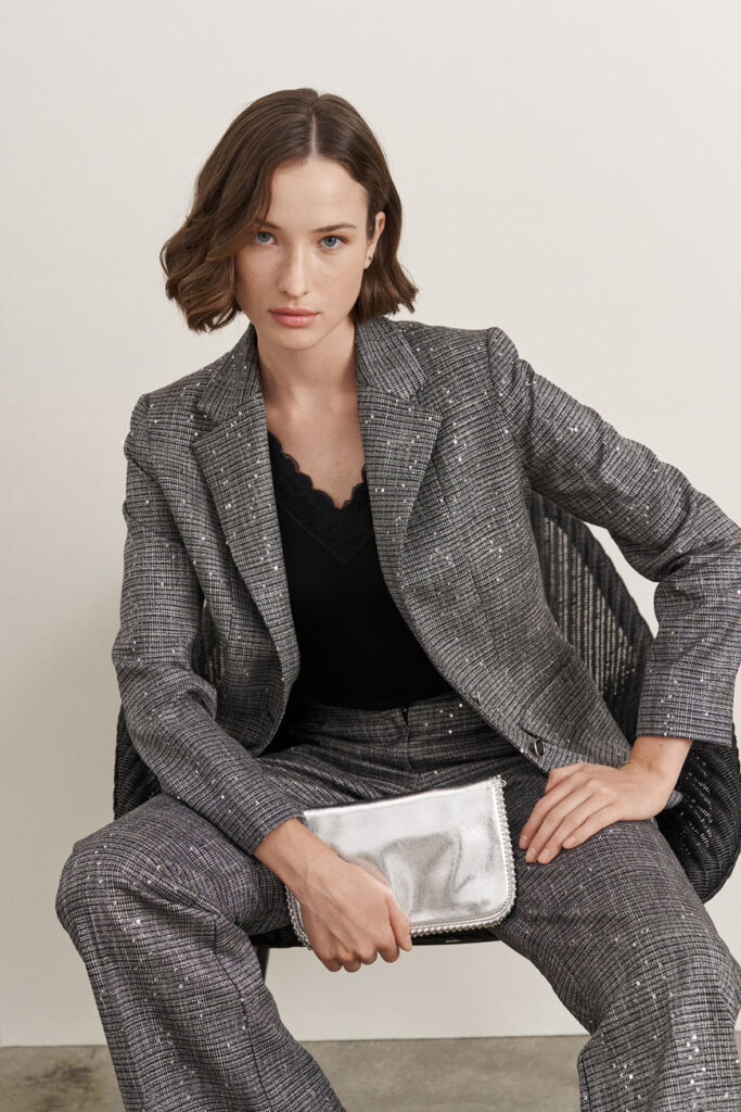 Όταν θέλεις να κάνεις είσοδο που θα μείνει αξέχαστη, αυτό το σετ είναι ό,τι χρειάζεσαι! Το σακάκι με τις λαμπερές παγιέτες και το κομψό παντελόνι αποπνέουν αρχοντική λάμψη. Φόρεσέ το με ένα τοπ σε ουδέτερη απόχρωση και πρόσθεσε ψηλοτάκουνα πέδιλα ή γόβες. Για ακόμα πιο glamorous αποτέλεσμα, πρόσθεσε ένα κόκκινο κραγιόν και λαμπερά κοσμήματα.