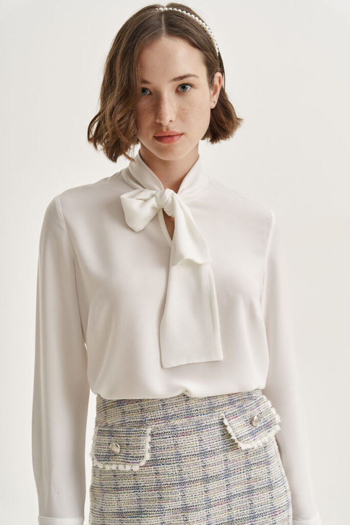 Αυτό το τοπ είναι ο ιδανικός σου σύμμαχος για δημιουργικούς συνδυασμούς. Το δέσιμό του προσθέτει έναν ιδιαίτερο χαρακτήρα, ενώ η υφή του το κάνει εξαιρετικά άνετο και ευέλικτο. Φόρεσέ το κάτω από ένα σακάκι, μια ζακέτα και με ένα ταγιέρ ή άφησέ το να ξεχωρίσει με ένα παντελόνι ή μία φούστα. Πρόσθεσε ένα ζευγάρι μποτάκια και μια κομψή τσάντα ώμου για ένα look που θα σε συνοδεύσει από το γραφείο μέχρι τις γιορτινές σου εξόδους!